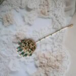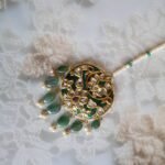 Grace your bridal look with this exquisite 22kt gold Maang Tikka, intricately designed with glowing emeralds, sparkling diamond polkies, rich rubies, and lustrous freshwater pearls. A timeless piece of Indian heritage jewellery, this tikka brings regal elegance and cultural charm to weddings, festive occasions, and heirloom collections. Handcrafted by skilled artisans, it’s the perfect blend of tradition and luxury.