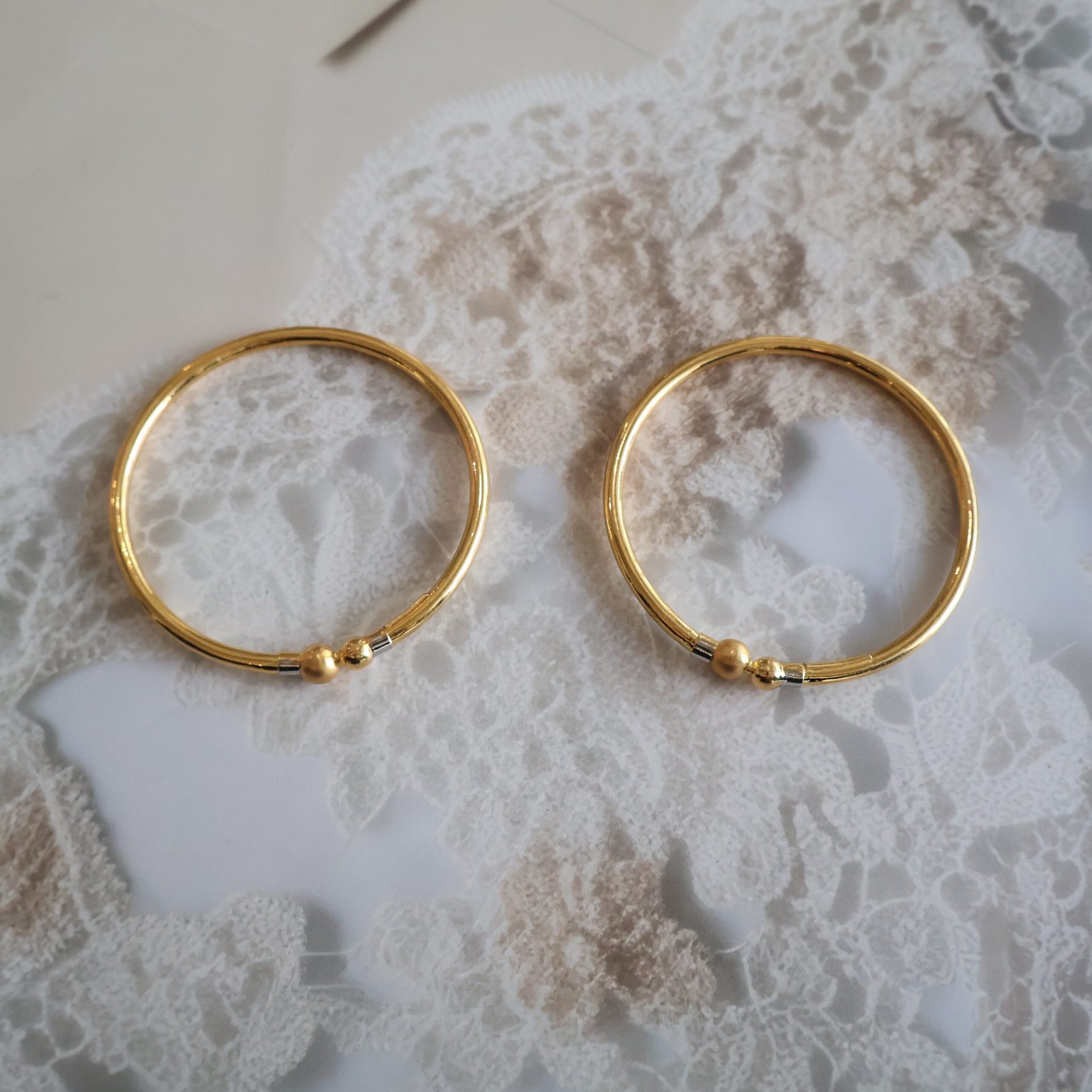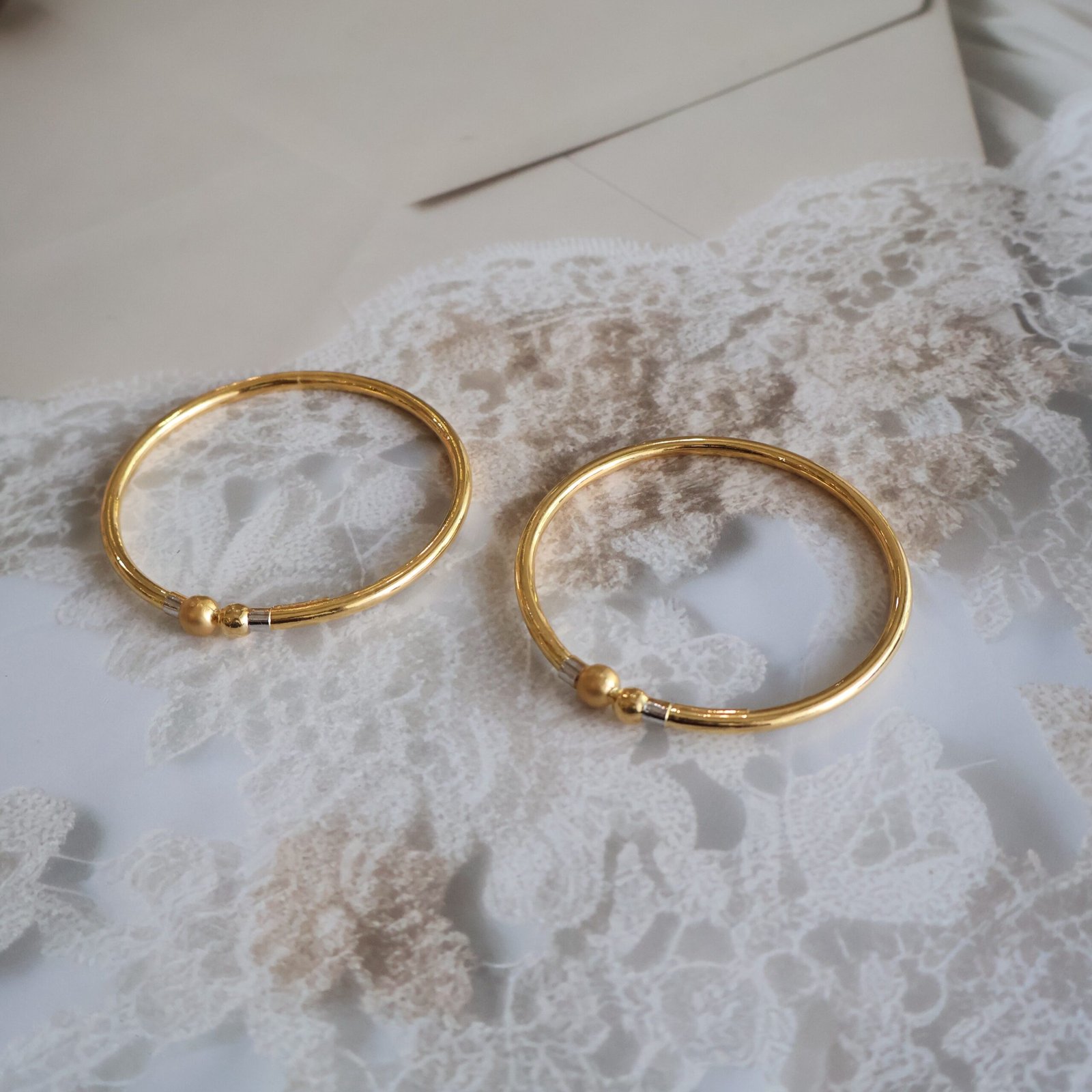 Elevate your style with these elegant 22kt gold bangles, a symbol of heritage and grace. Expertly handcrafted by skilled artisans, each bangle reflects the richness of Indian tradition while maintaining a refined, modern appeal. Lightweight yet durable, these bangles are perfect for weddings, festive celebrations, and daily wear. Their versatile design ensures they complement both ethnic and contemporary outfits, making them a treasured addition to your jewellery box. A timeless investment, these bangles embody purity, elegance, and lasting value.