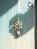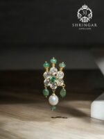 The pearls symbolize purity and elegance, while the green and white stones add a refreshing touch, enhancing your overall look. Whether you’re dressing up for a wedding or simply want to add a hint of glamour to your outfit, this 22k gold nosepin is the perfect choice. Cherish it as a timeless addition to your jewelry collection!