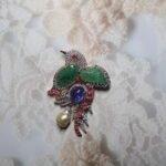 Elegant 14kt gold brooch/pendant studded with emeralds, diamonds, tanzanite, rubies, rubellite stones, and keshi pearls — a luxurious multi-gem statement piece.