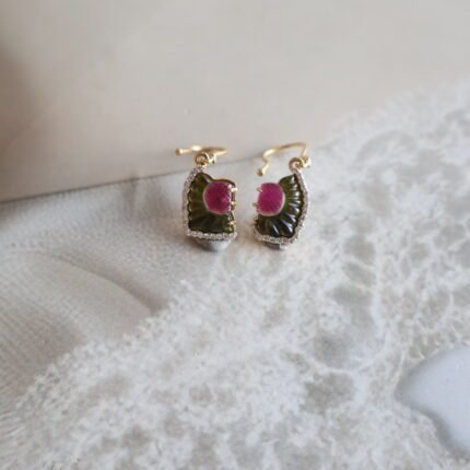These beautiful earrings are made with sparkling diamonds and colourful gem stones. The diamonds add bright shine, while the gem stones give a rich and attractive look. The design is elegant and perfect for weddings, parties, and special occasions. These earrings are stylish, graceful, and easy to match with both traditional and modern outfits.