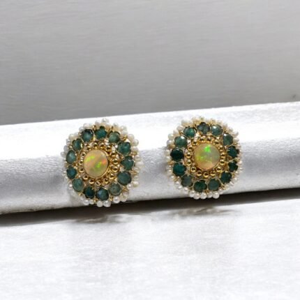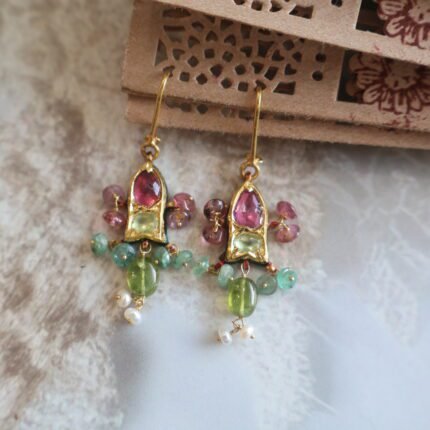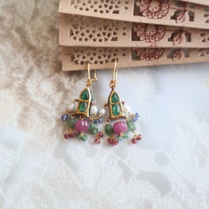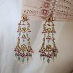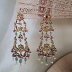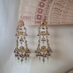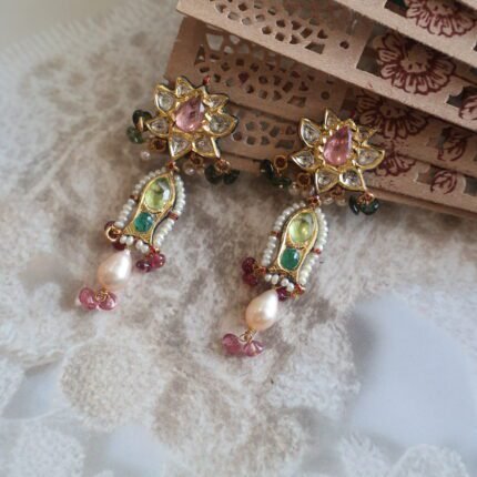 Elevate your elegance with our handcrafted 22kt gold earrings, beautifully adorned with shimmering diamond polkies, rich emeralds, vibrant rubies, and lustrous freshwater pearls. A perfect blend of royal artistry and timeless charm, these earrings are designed for women who cherish heritage-inspired jewellery with a modern touch. Whether it’s a wedding, festive occasion, or an heirloom addition to your collection, these earrings embody sophistication and tradition in every detail.