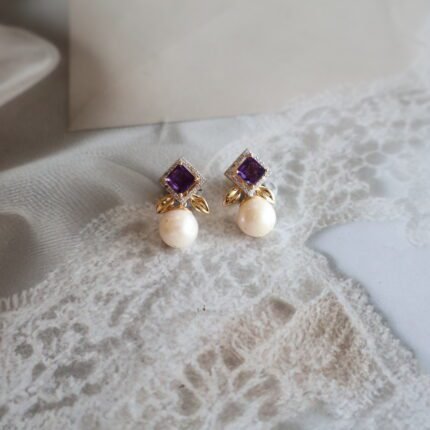 These beautiful 18 KT gold earrings are designed with sparkling diamonds and natural gemstones. The diamonds shine brightly and add extra sparkle, while the natural gemstones give lovely colour and charm to the earrings. Made in pure 18 karat gold, they are perfect for weddings, festivals, parties, and special occasions. These earrings are stylish, elegant, and easy to match with both traditional and modern outfits.