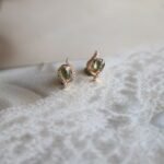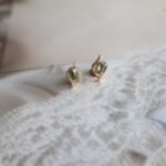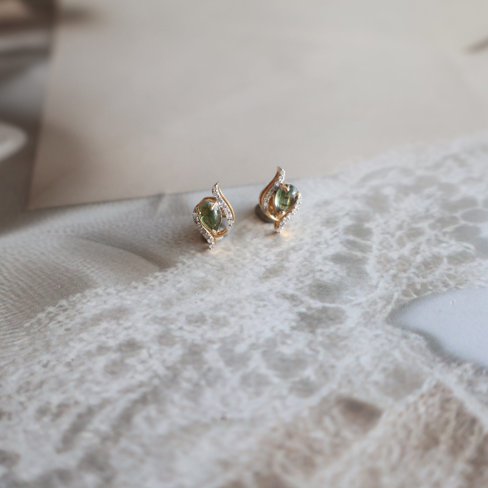 18 KT gold earrings with diamonds and natural gemstones for a simple and elegant look.