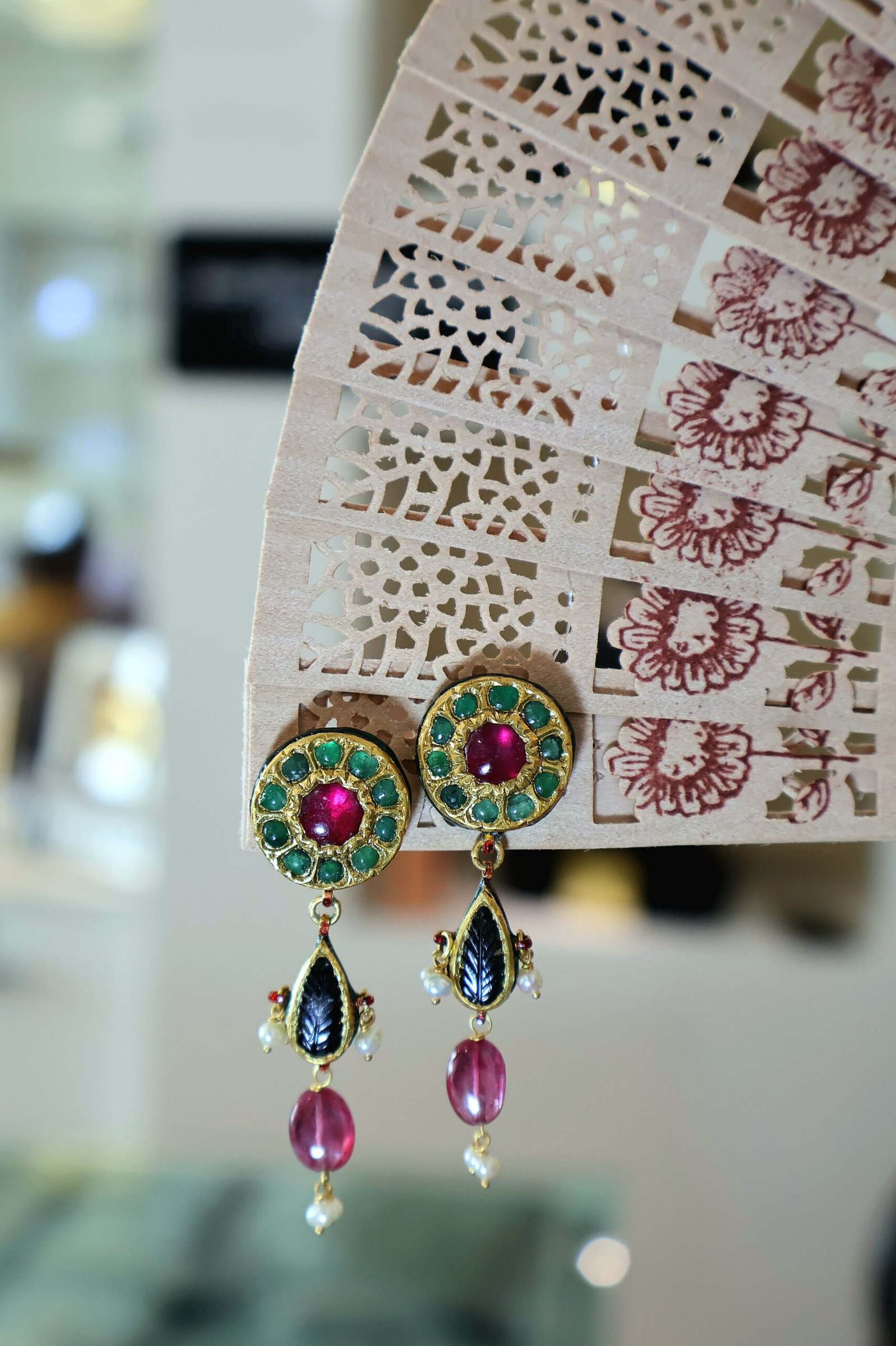 Add a royal touch to your look with these colourful and elegant earrings – where timeless tradition meets modern beauty.