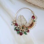The uncut charm of polkis adds an old-world allure, while the contrasting gemstones bring life and vibrance to the piece. Designed for those who appreciate traditional beauty with a refined touch, this nath is more than just jewelry—it’s a statement of timeless grace.