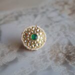 The warm glow of pure gold paired with the brilliance of kundan creates a striking yet graceful statement on the forehead. Lightweight and comfortable, this Rakhri complements bridal lehengas and sarees effortlessly, offering an heirloom-quality piece that embodies heritage, beauty, and craftsmanship.