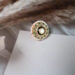 This elegant Rakhri is handcrafted with vibrant emeralds and soft freshwater pearls, bringing together rich green tones and gentle ivory hues in a graceful design. Inspired by traditional Indian craftsmanship, this piece is delicately made to reflect timeless beauty and detail.