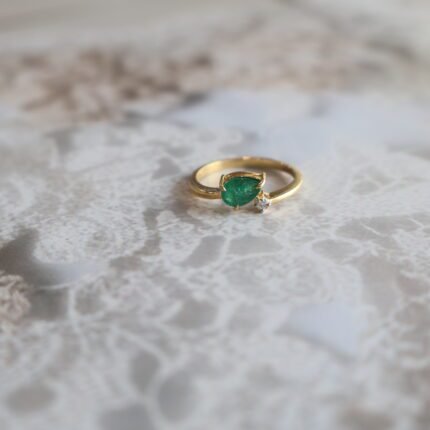 The sleek gold band offers a modern yet classic feel, making this ring a versatile piece that transitions effortlessly from day to evening. Whether worn as a statement accessory, a gift of love, or an addition to your fine jewellery collection, this emerald and diamond ring embodies grace, beauty, and timeless craftsmanship.