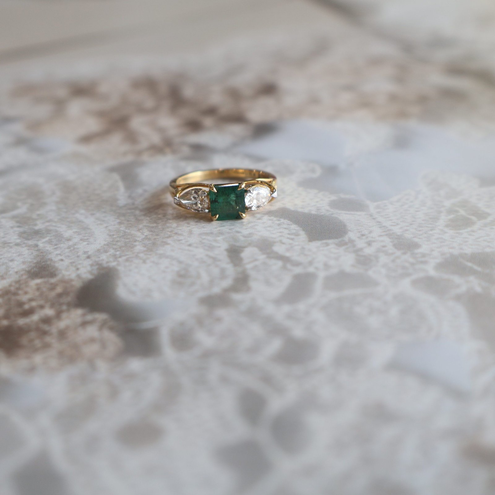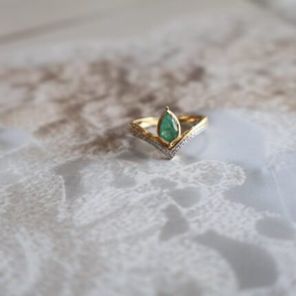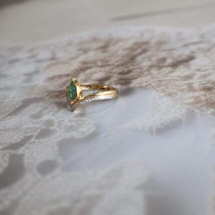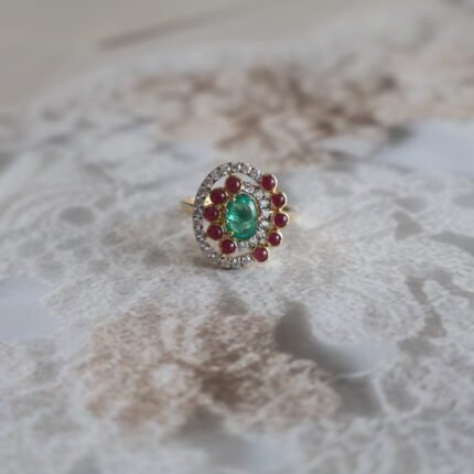 This elegant 18kt gold ring beautifully pairs the richness of a natural emerald with the brilliance of fine diamonds, creating a luxurious statement piece for any occasion. The vivid green emerald sits at the center, symbolising harmony and prosperity, while the surrounding diamonds add unmatched sparkle and sophistication.