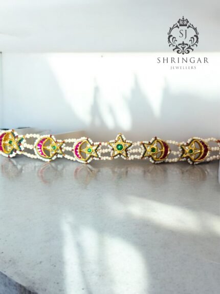 Perfect for weddings, sangeet, and traditional celebrations, this shishfool blends heritage charm with luxurious detailing. Its lightweight design ensures comfort throughout long events, making it an heirloom accessory cherished for generations.