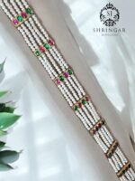 Adorn yourself with this exquisite Shishfool Mathapatti, meticulously handcrafted in 22-karat gold and embellished with vibrant emeralds, rich rubies, and delicate freshwater pearls. This timeless head ornament celebrates elegance and tradition, making it the perfect accessory for any special occasion. As gold prices fluctuate daily, we strive to keep our offerings as fair as possible. While our website may not reflect these changes in real time, we encourage you to reach out to us directly for the most accurate pricing based on the current gold rate. Thank you for your understanding and support. We look forward to assisting you in bringing your jewelry dreams to life!